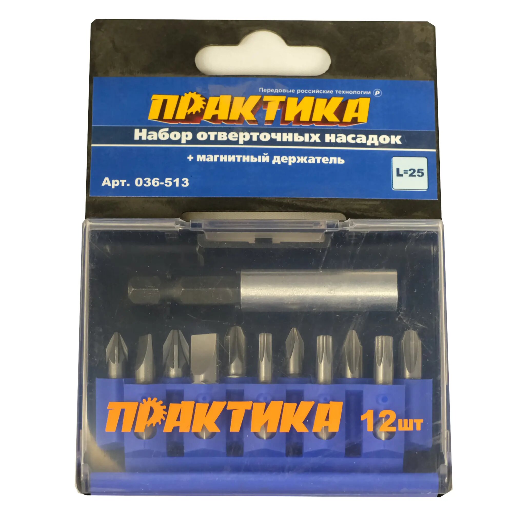 Практика Набор бит 12 шт PH 3шт,PZ 3шт+SL2шт+Torx3шт+магндерж 036-513 .