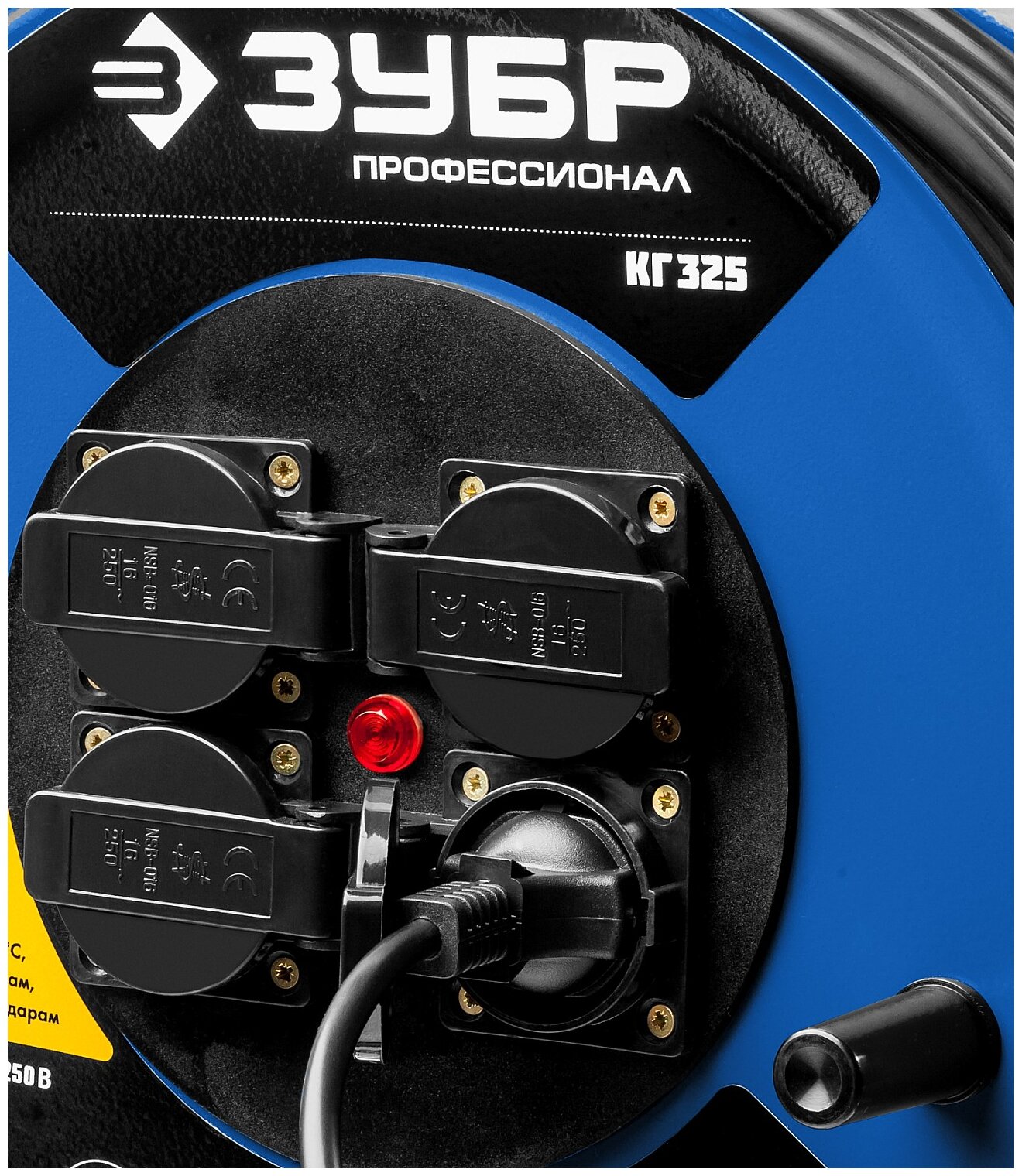 ЗУБР 55079-50 КГ 325 удлинитель на катушке, 50 м, 4000 Вт, 4 гнезда, IP44, КГ 3х2,5 кв мм, Профессионал