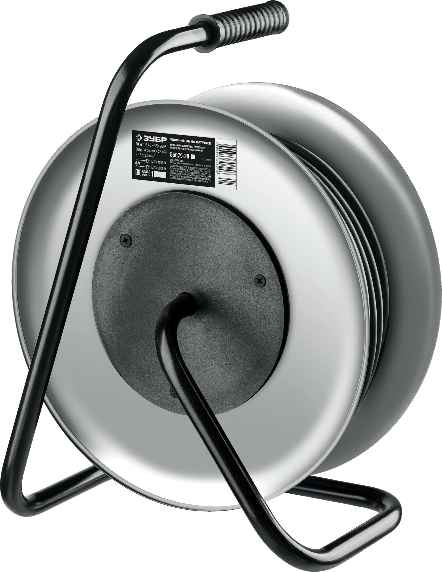 Удлинитель Зубр 55079-20 на катушке "КГ 325", 20 м, 4000 Вт, 4 гнезда, Ip44, КГ 3х2,5 кв мм 55079-2 .