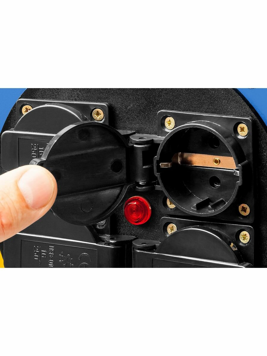 Удлинитель на катушке ЗУБР 55079-20, 4 розетки, с/з, 16А / 4000 Вт синий 20 м 23 мм 30 мм 38 мм 2.5 м² 4