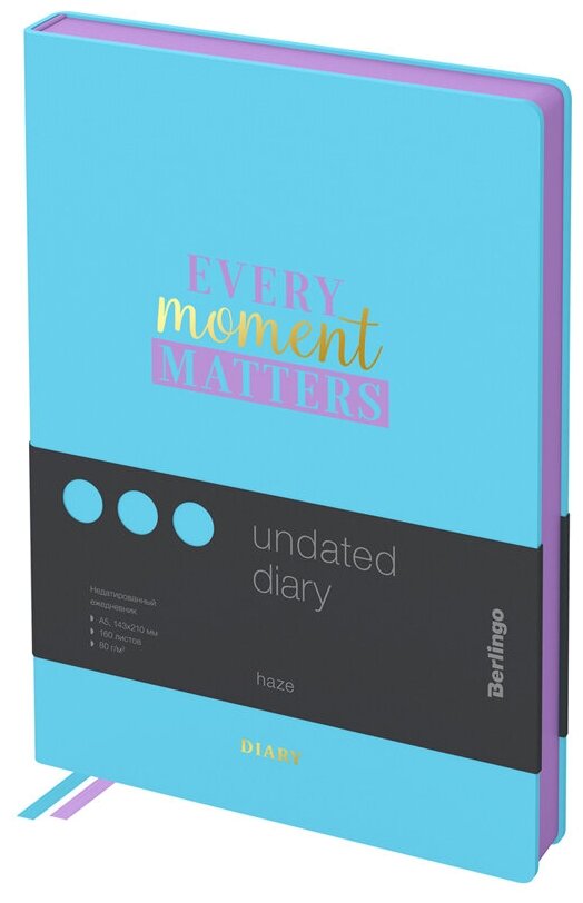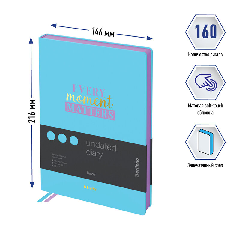 Ежедневник Berlingo Haze недатированный на 2022-2023 год, искусственная кожа, А5, 160 листов, голубой, цвет бумаги тонированный