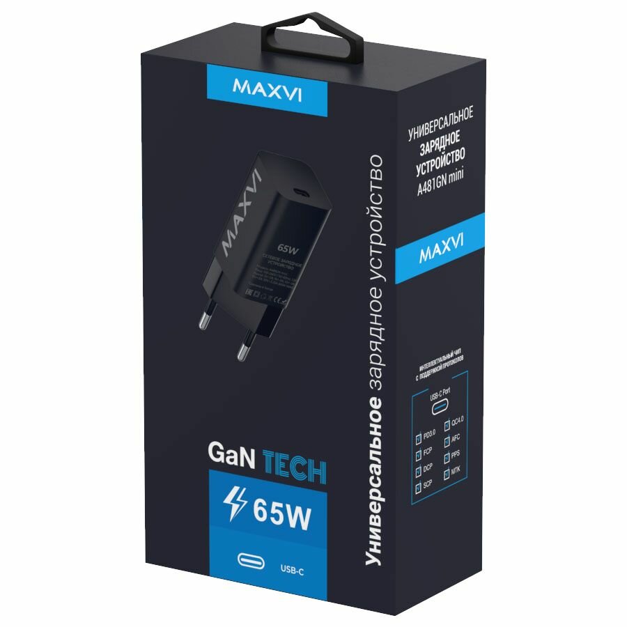 СЗУ Maxvi A481GN 65W, USB-C, цвет: черный