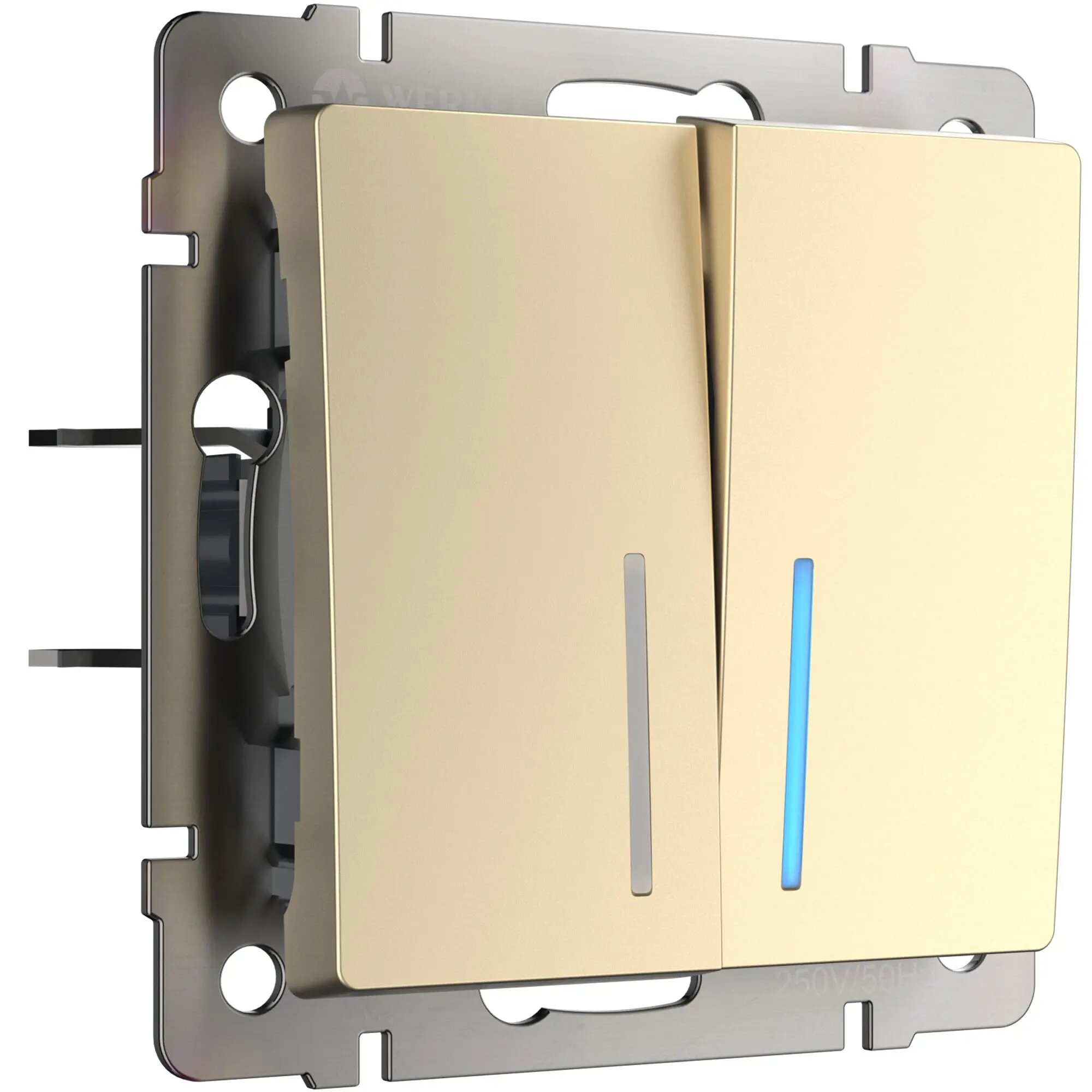Выключатель Werkel (a051414) двухклавишный скрытая установка шампань рифленый IP20 с подсветкой