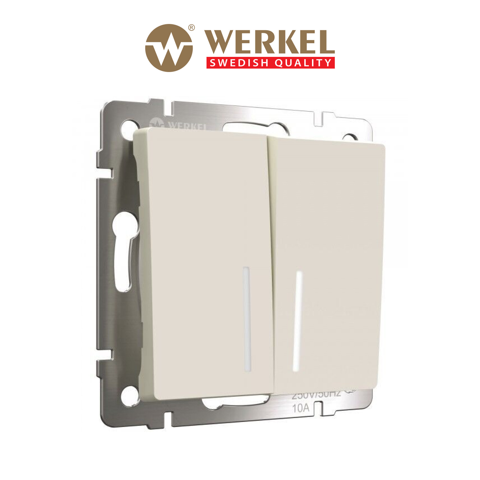 Выключатель двухклавишный проходной c подсветкой слоновая кость Werkel W1122103