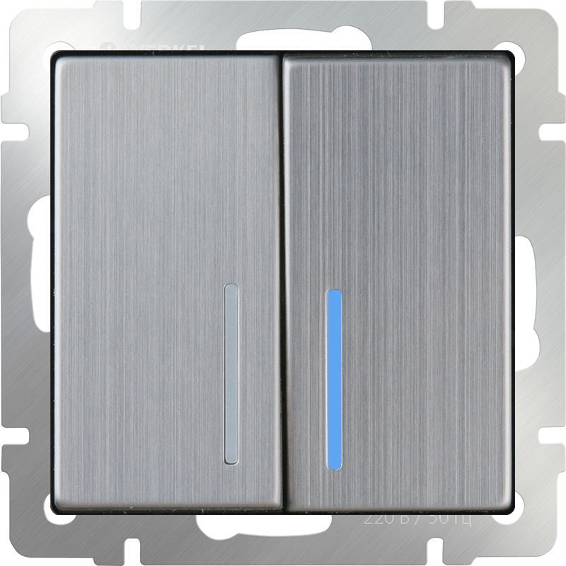 Проходной двухклавишный выключатель/переключатель с подсветкой Werkel W1122109 cеребряный рифленый IP20