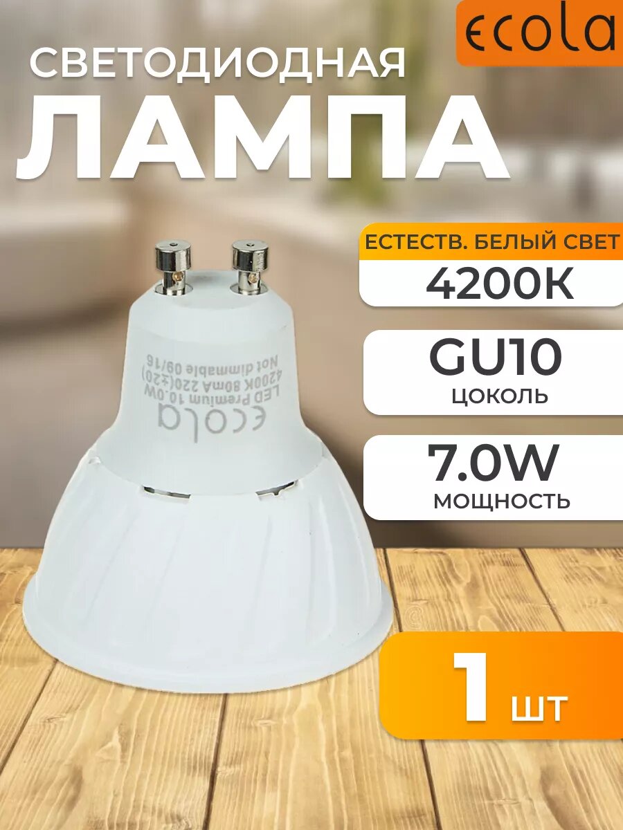 Лампочка светодиодная GU10, 7W, 4200k, Ecola Premium, 10 штук