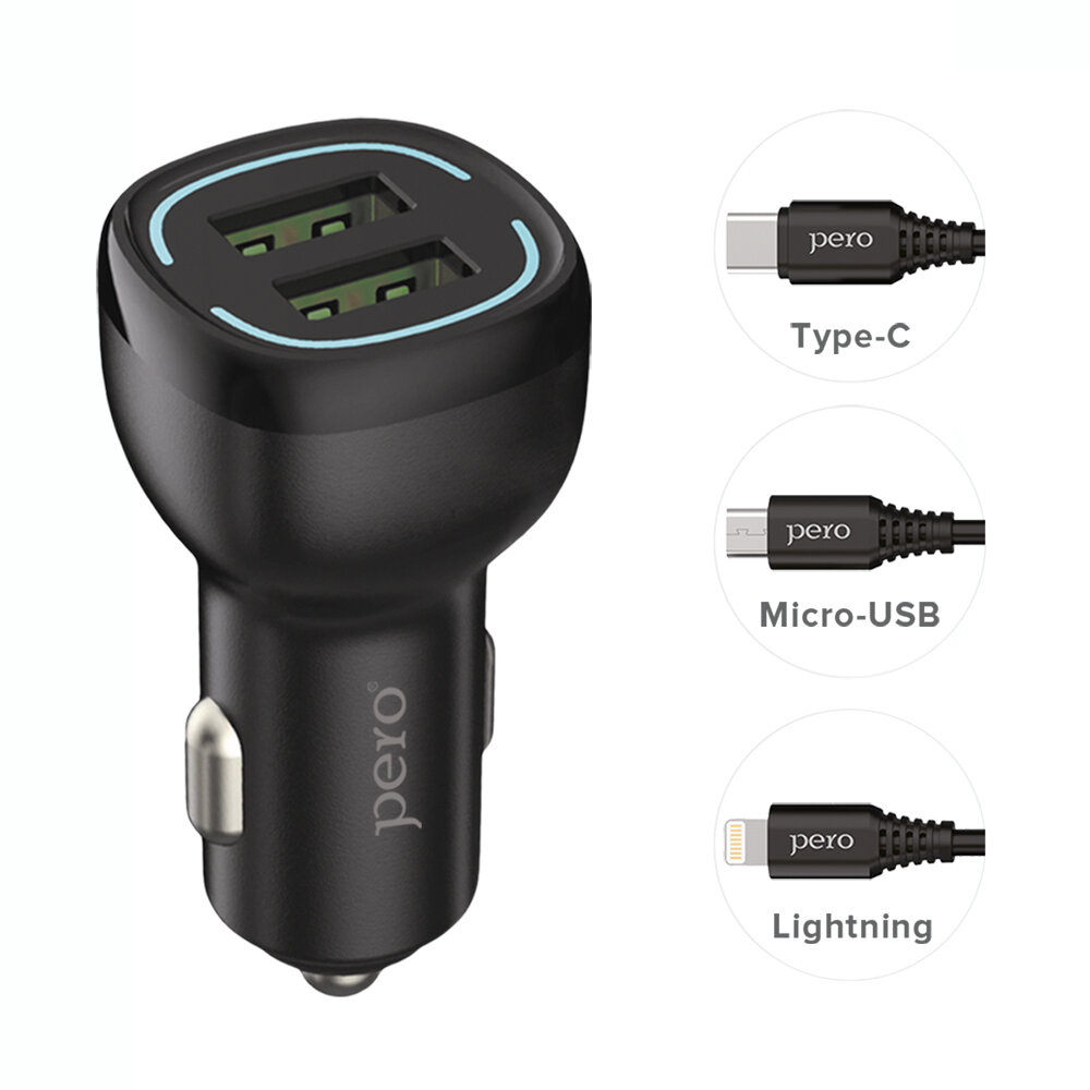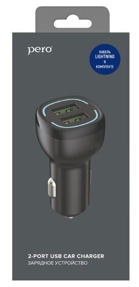 Автомобильное зарядное устройство Pero AC04 2 USB, 2.4 A AUTOMAX, c кабелем Lightning в комплекте, черное