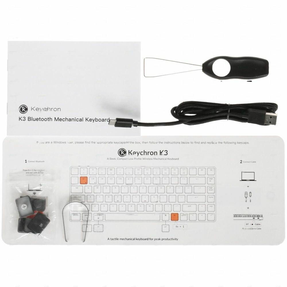 | Комплектация | клавиатура, кабель USB-A - USB Type-C, инструмент для снятия клавиш, инструмент для извлечения переключателей (только версии с HotSwap), сменные клавиши для MacOS / Windows 5 шт., руководство по эксплуатации |