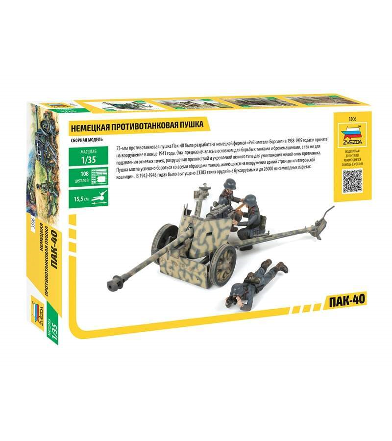 Сборная модель ZVEZDA Немецкая противотанковая пушка ПАК-40, 1/35