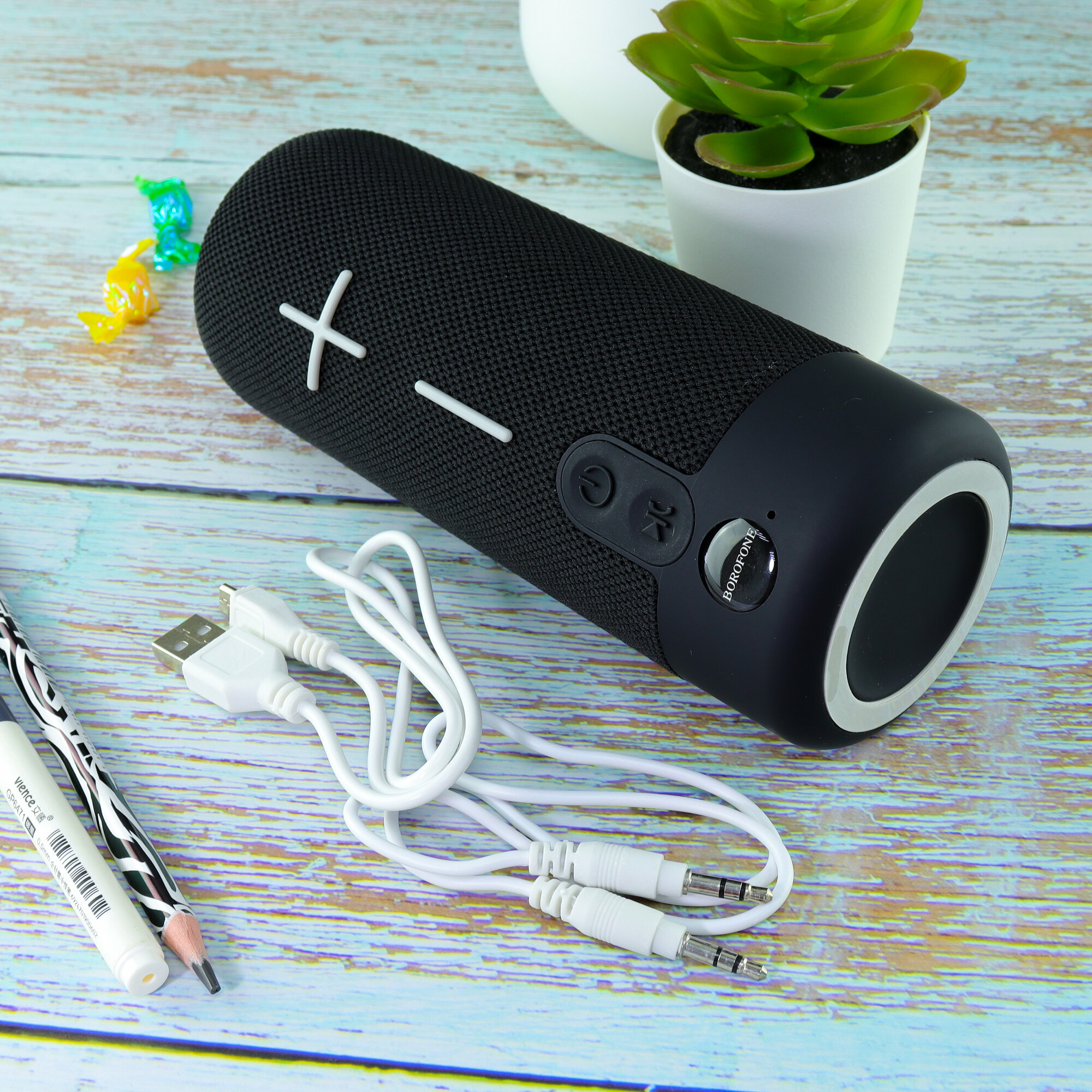 Портативная колонка BOROFONE BR19 Euphony, Bluetooth, пластик, FM, TF, SD, TWS, подсветка, черный (6974443381979)