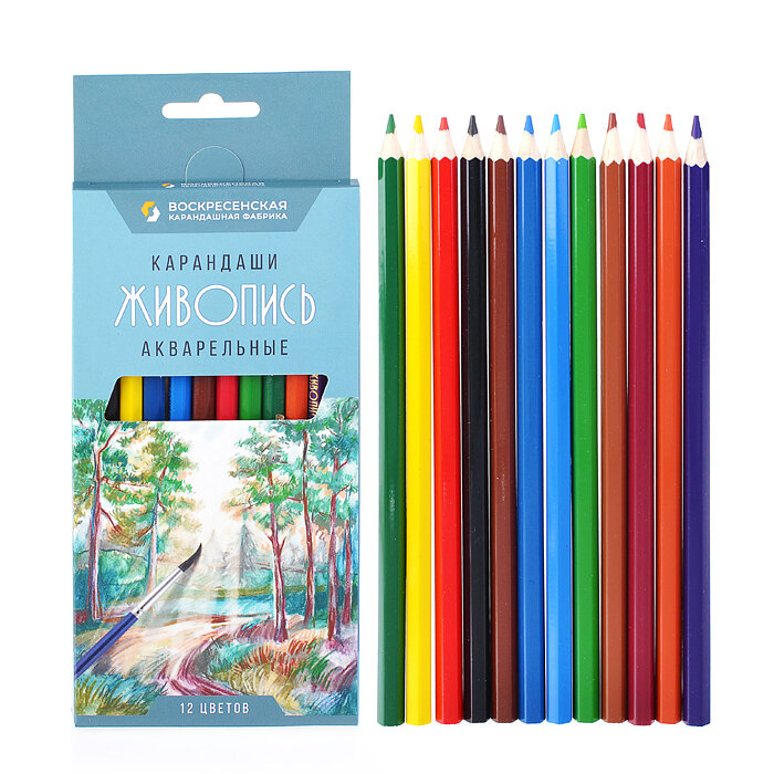 Карандаши цветные акварельные 12 цветов, дерево, шестигранный, картонная коробка Живопись Воскресенская карандашная фабрика JIV-WCP-1012 - 1 шт.