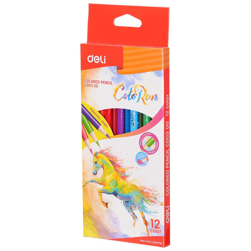 Карандаши цветные Deli ColoRun, трехгранные, тополь, 12 цветов (EC00300)
