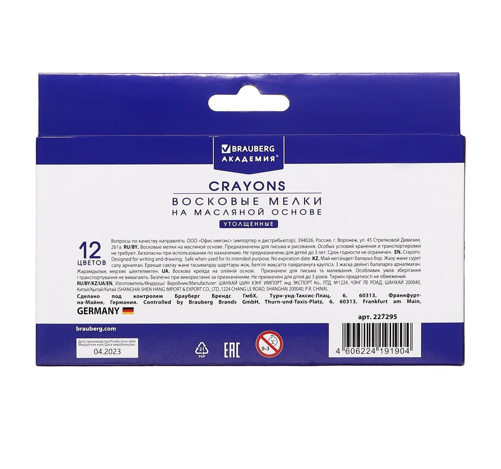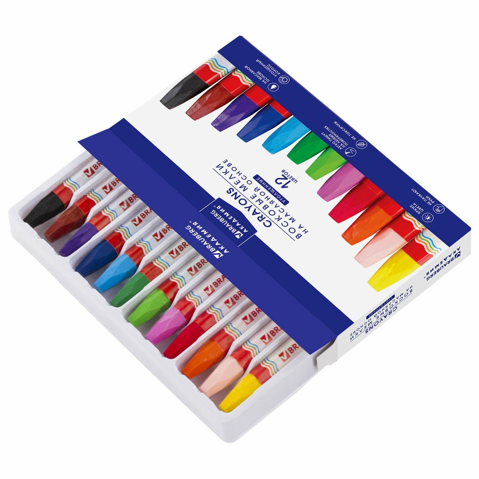 Восковые мелки утолщенные BRAUBERG "академия" набор 12 цветов на масляной основе яркие цвета 227295 1 шт