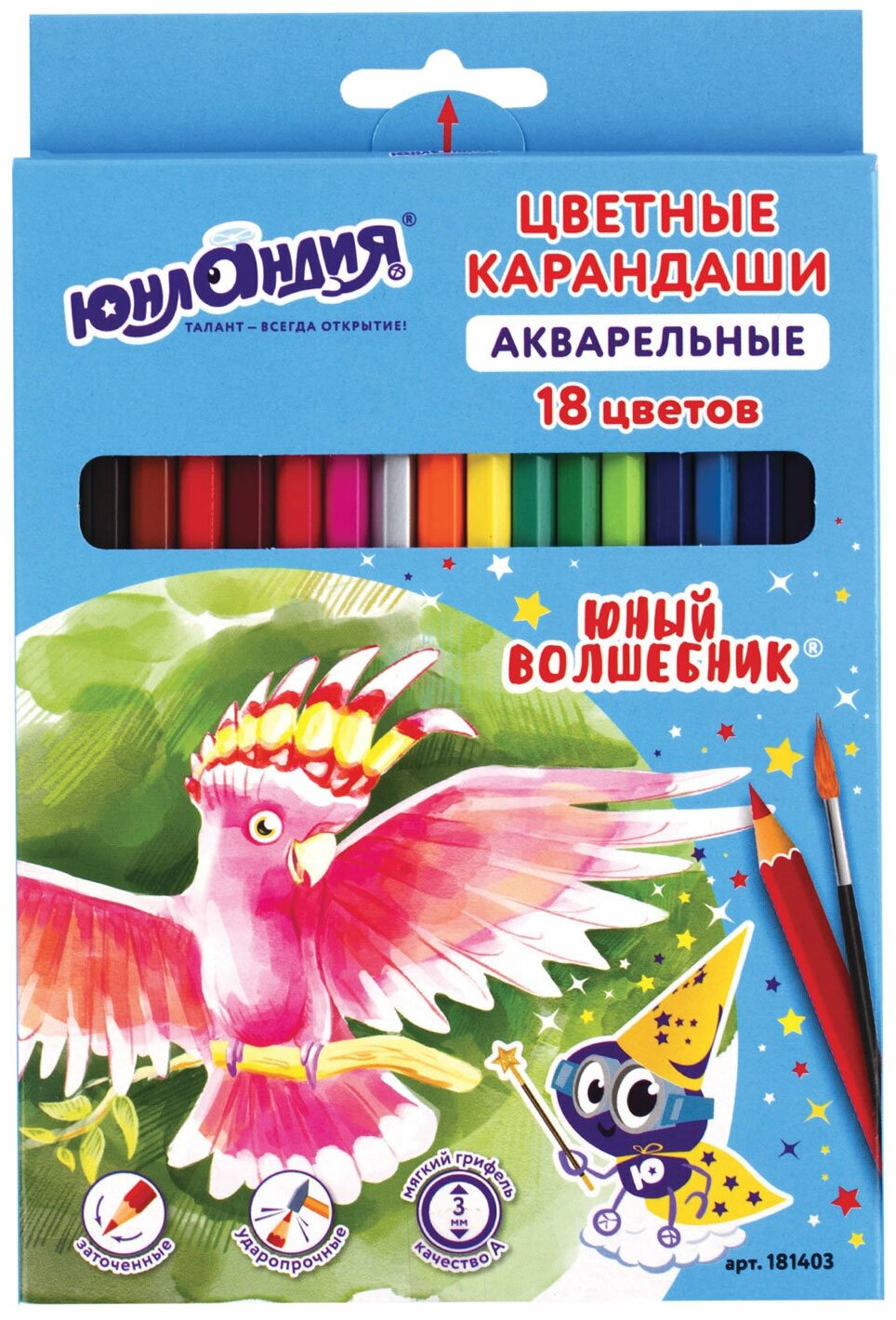 Карандаши акварельные цветные художественные для рисования Юный волшебник, набор из 24 цветов, заточенные, шестигранные, Юнландия, грифель 3 мм, натуральное дерево, 181404