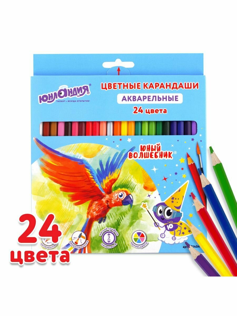 Карандаши цветные акварельные юнландия "юный волшебник", 24 цветов, шестигранные, заточенные, 181404