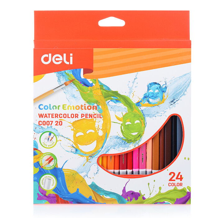 Карандаши цветные акварельные Deli 24 цвета, липа (EC00720|A)