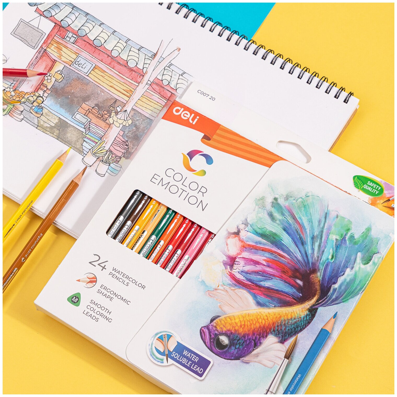 Карандаши цветные акварельные Deli 24 цвета, липа (EC00720/A)