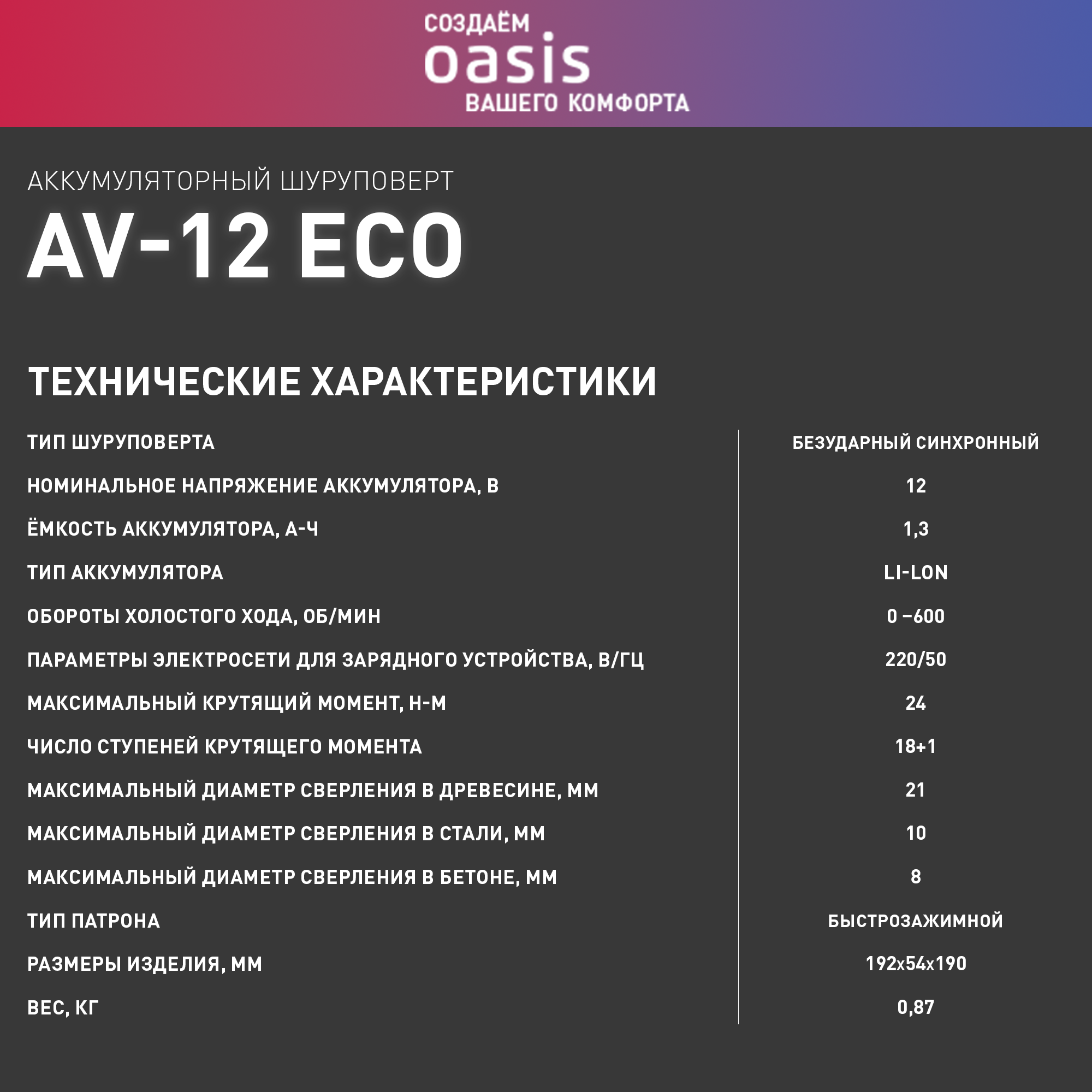 Шуруповерт аккумуляторный Oasis Eco AV-12