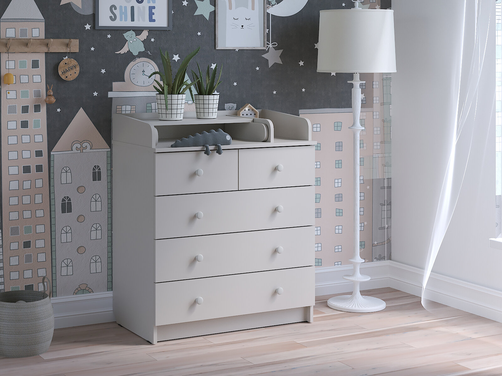 Комод детский с пеленальным столиком Сириус-2 805 ЛДСП, ясень шимо светлый/белый, 5 ящиков