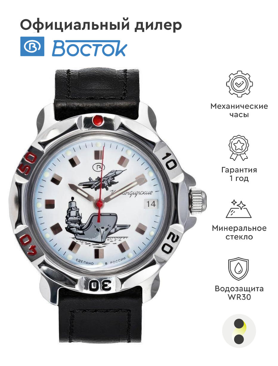 Мужские наручные часы Восток Командирские 811261-classic, натуральная кожа, черный