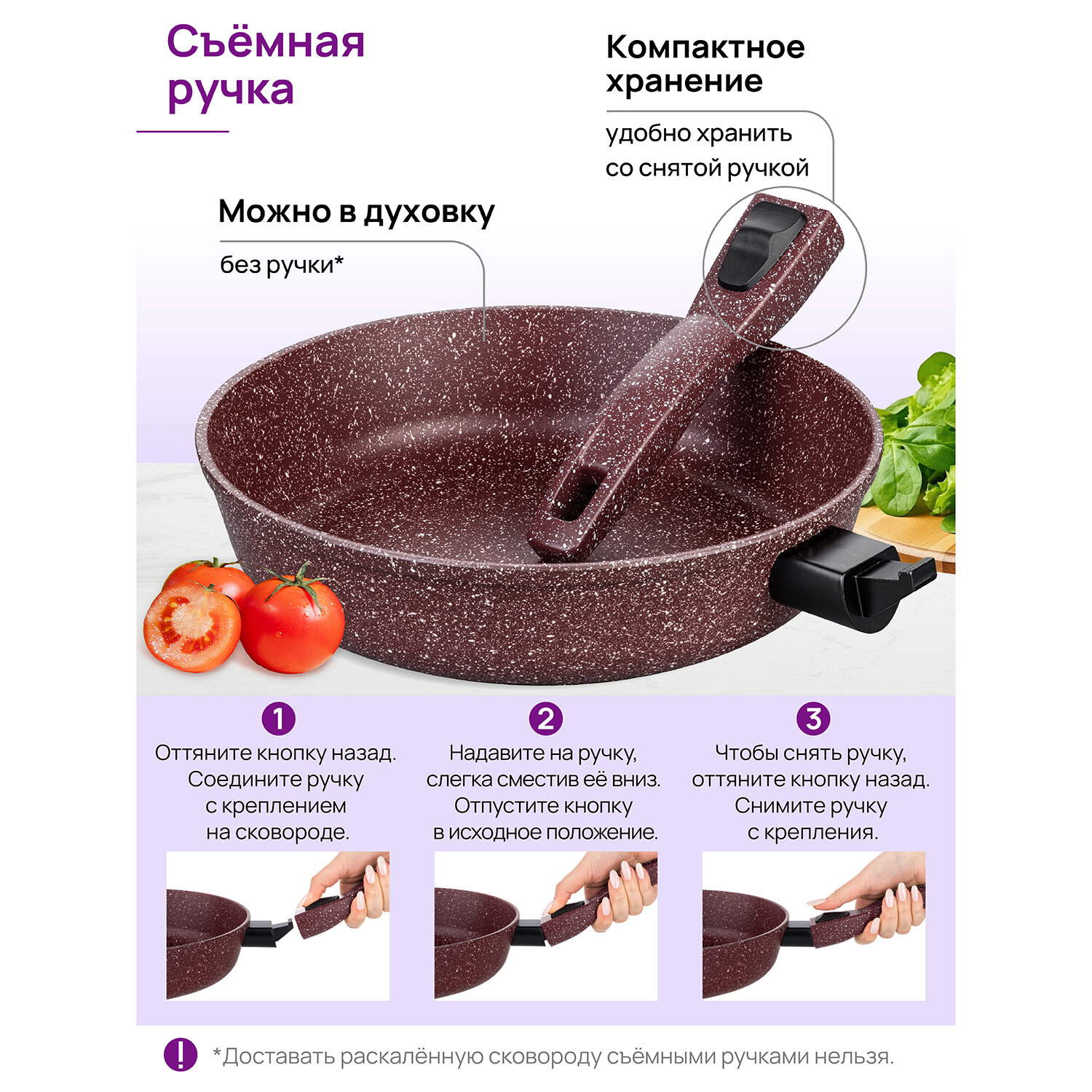 Сковорода глубокая 20 см Elan Gallery гармония вкуса Рубин, со съёмной ручкой