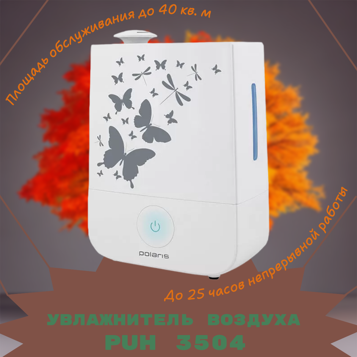 Ультразвуковой увлажнитель воздуха Polaris PUH 3504, с сенсорным управлением, Белый
