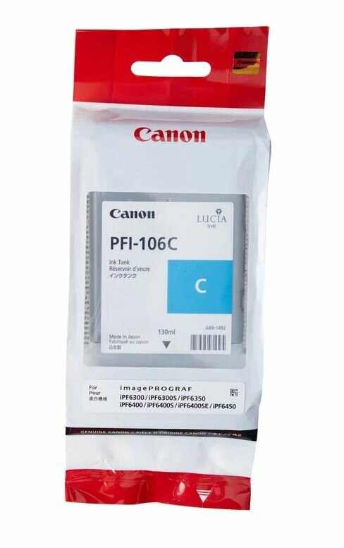 Картридж Canon PFI-106 C для iPF6300S 6400 6450 голубой