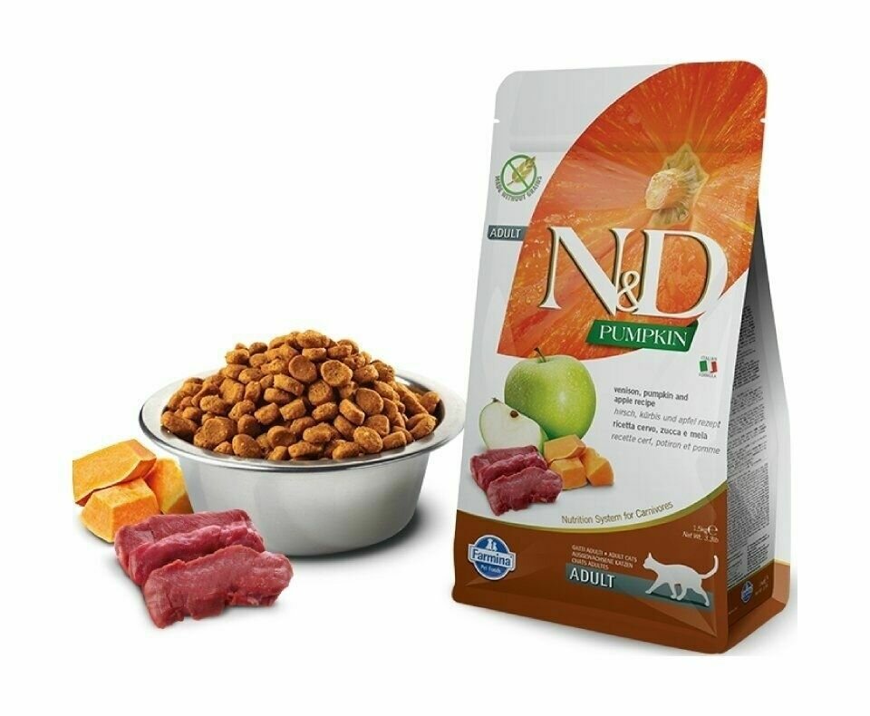 Farmina N&D Cat Grain Free pumpkin venison корм для взрослых кошек с олениной, тыквой и яблоком 1,5 кг