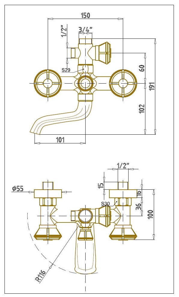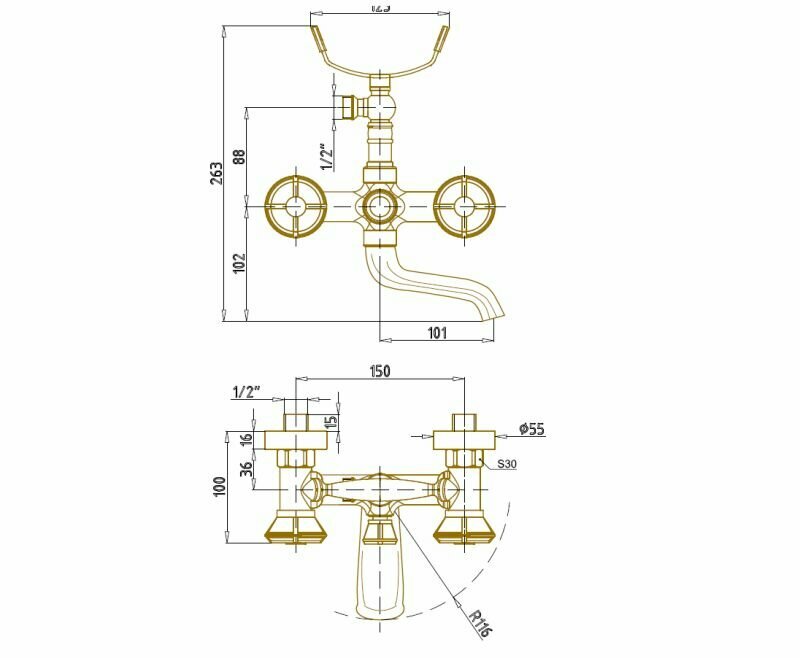 Смеситель Bronze De Luxe Royal 10119 для ванны