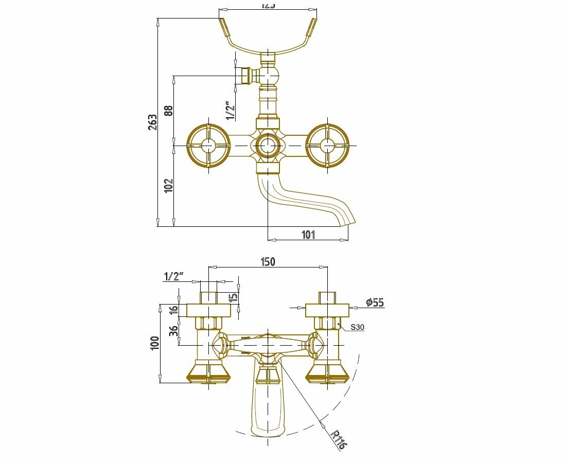 Смеситель для ванны Bronze de Luxe Royal 10119