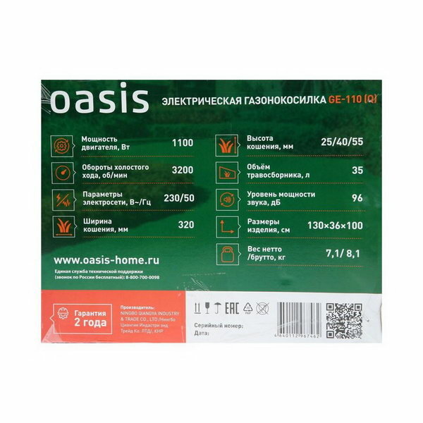 Газонокосилка Oasis GE-110 (Q)