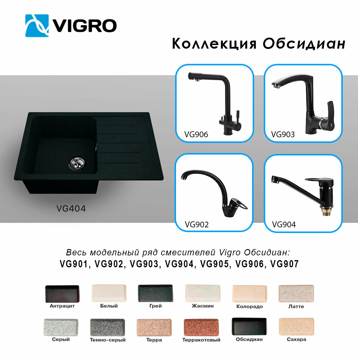 Кухонная мойка VIGRO VG404 обсидиан (750*495*200)