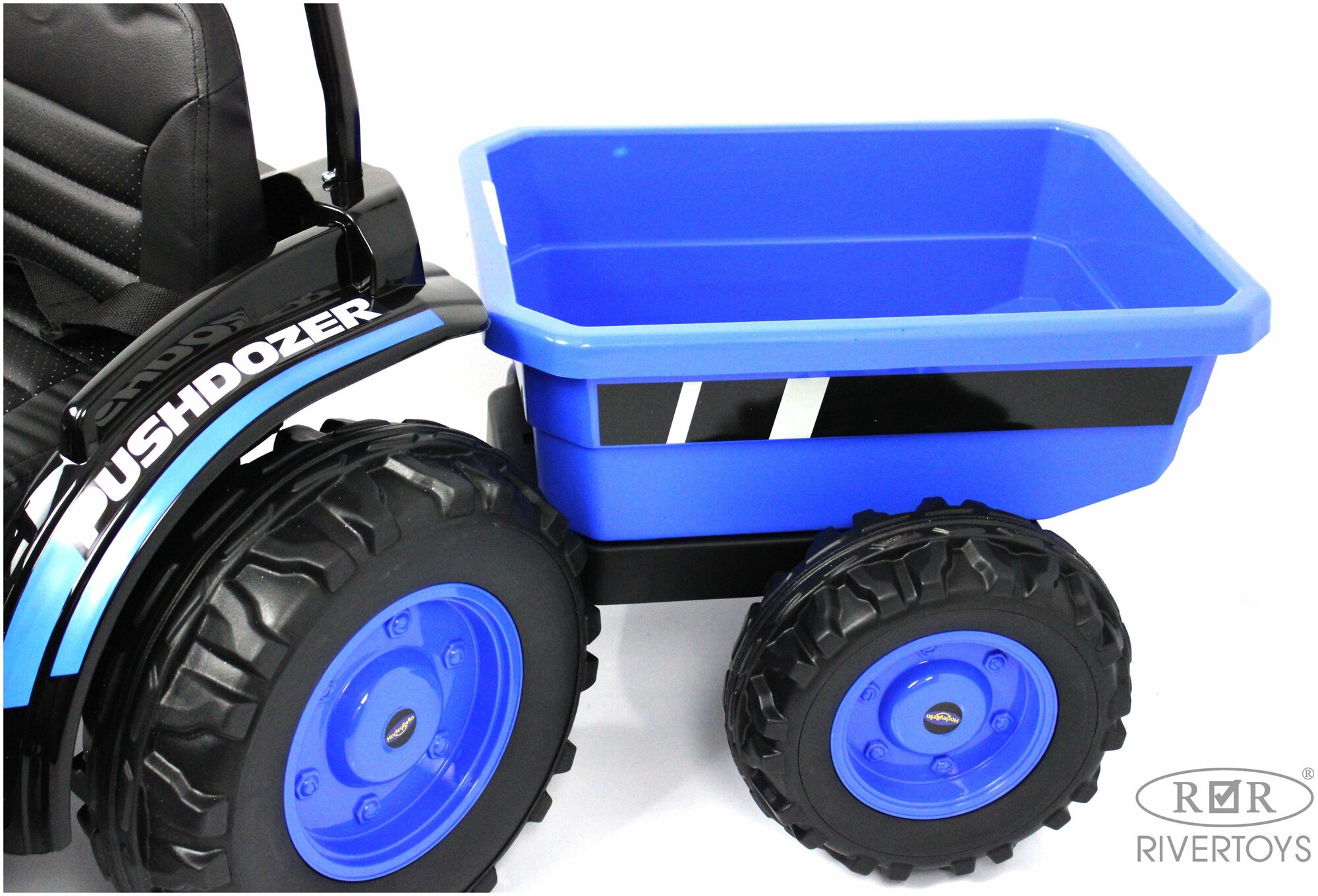 RiverToys Детский электромобиль трактор-погрузчик с прицепом HL395 синий интересное: