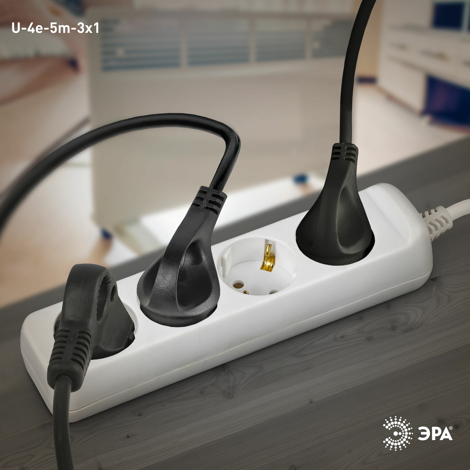 Эра Б0028375 Удлинитель электрический U-4e-5m-3x1 с заземлением 4 розетки 5м ПВС 3x1 мм2 16А