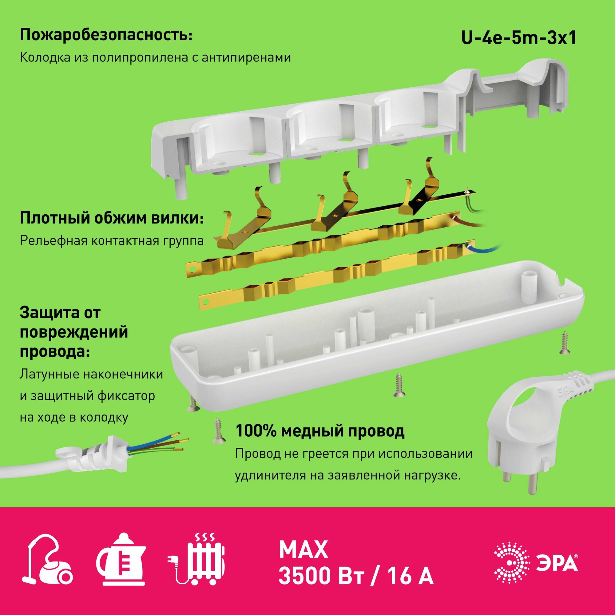 Удлинитель ЭРА U-4e-5m-3x1 Б0028375