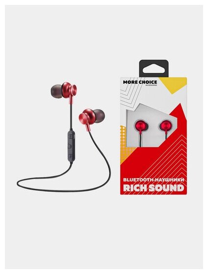 Купить Беспроводные BLUETOOTH наушники More choice BG6 red вакуумные с шейным шнурком