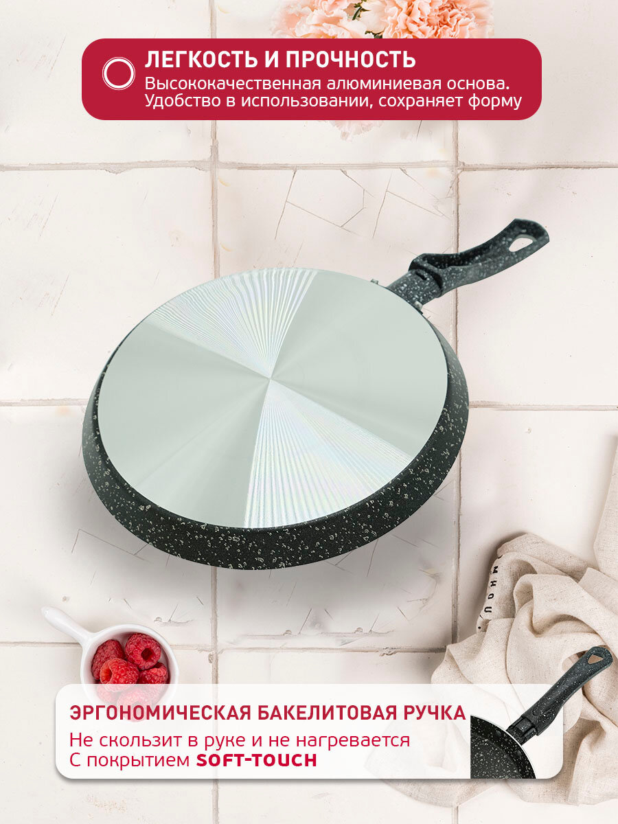 СохранитьСковорода штампованная блинная черный гранит, 22см интересное: