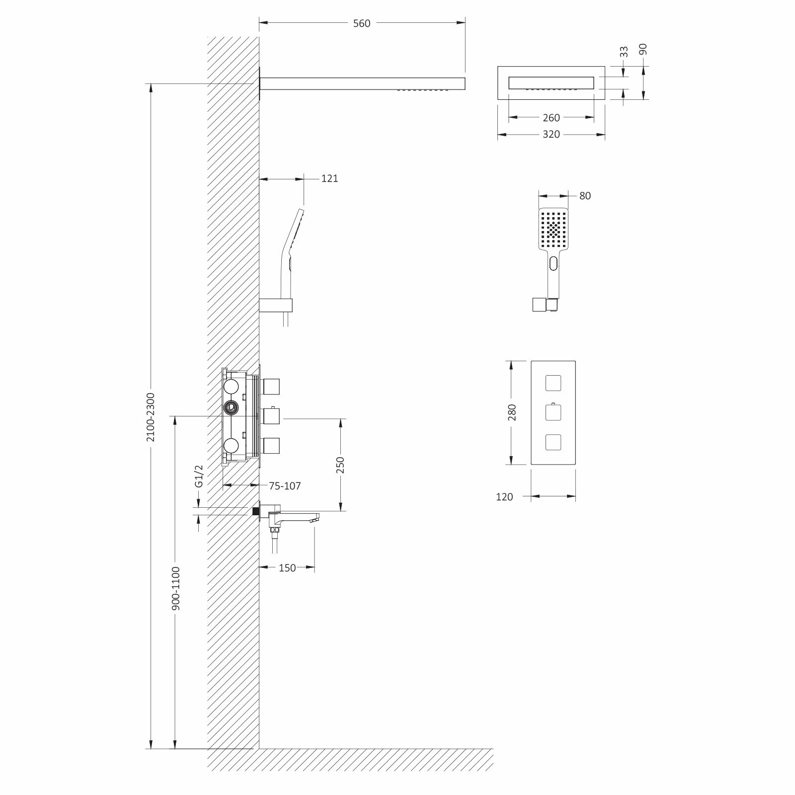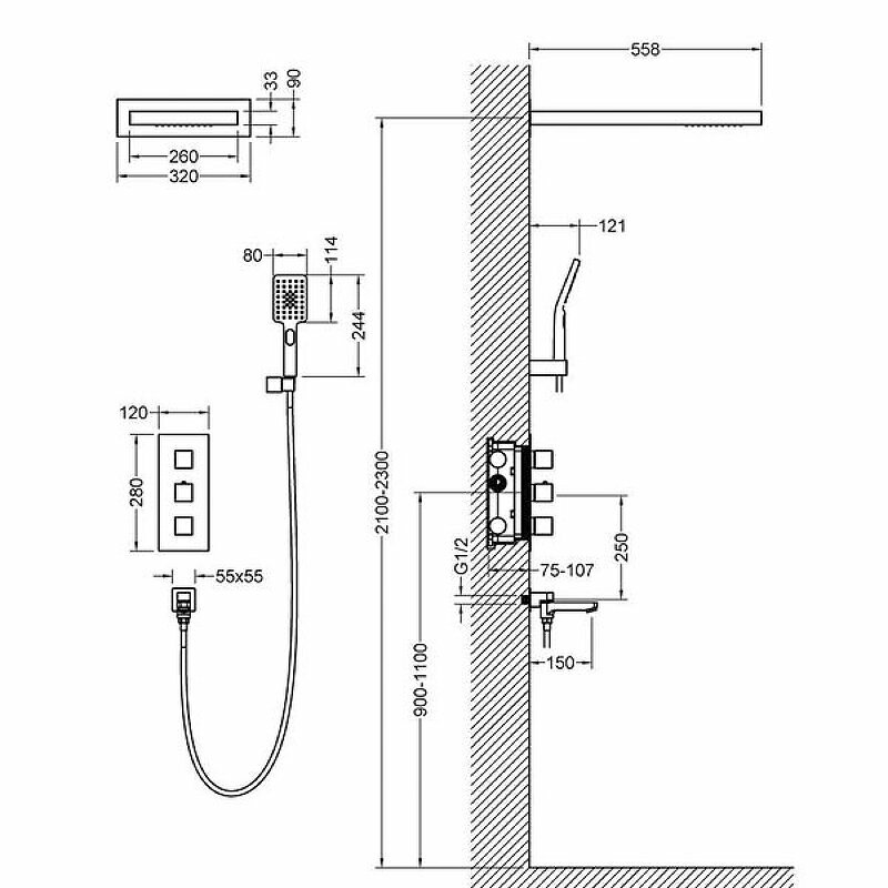 | Комплектация | Смеситель с монтажной коробкой / скрытого монтажа / с термостатом - 1 шт. Тропический душ / настенный / скрытого монтажа / (латунный) - 1 шт. Крепежные углы для тропического душа - 1 шт. Подводка к тропической лейке 1 м - 1 шт. Ручная лейка 3-х режимная (пластик) - 1 шт. Держатель ручной лейки (пластик) - 1 шт. Декоративная накладка смесителя (латунная) - 1 шт. Ручка управления термостатом - 1 шт. Шланг душа 1,5 м - 1 шт. Излив поворотный с подключением душа - 1 шт. Ручка дивертора - 1 шт. Инструкция - 1 шт. |