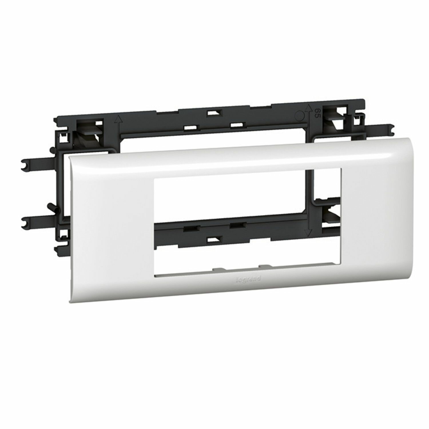Розетка с заземлением с защитными шторками на клеммах 16А 4 модуля в сборе суппортом и рамкой для установки в кабель-канал DLP с крышкой 65мм Legrand