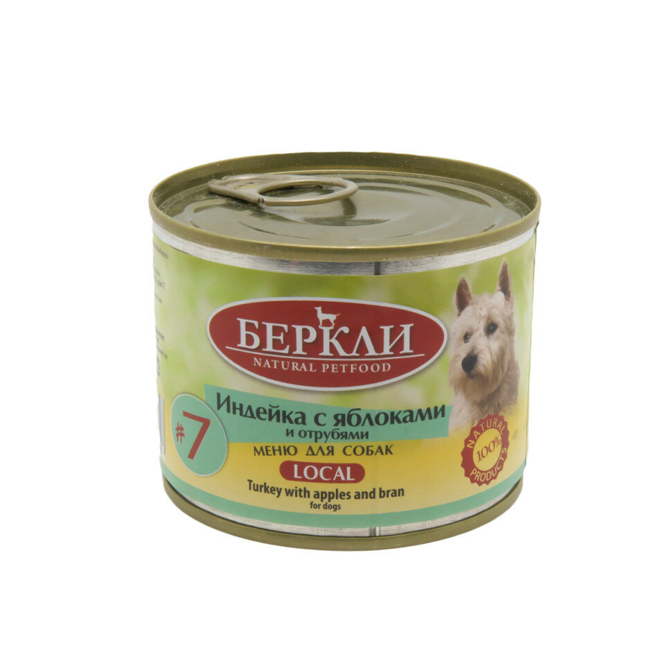 Купить Беркли №7 влажный корм для взрослых собак и щенков, индейка с яблоками и отрубями - 200 г x 8 шт
