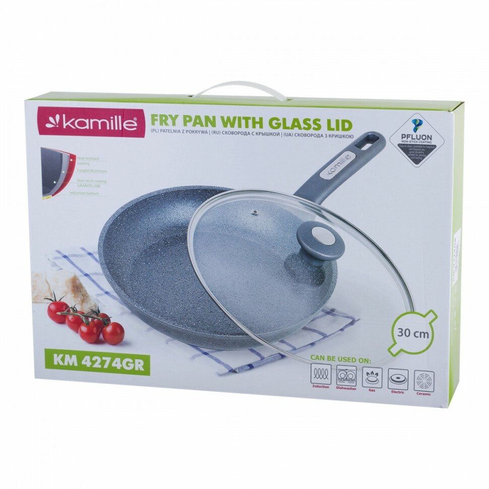 Купить Сковорода Ø30см с крышкой и гранитным покрытием из алюминия Kamille 4274GR