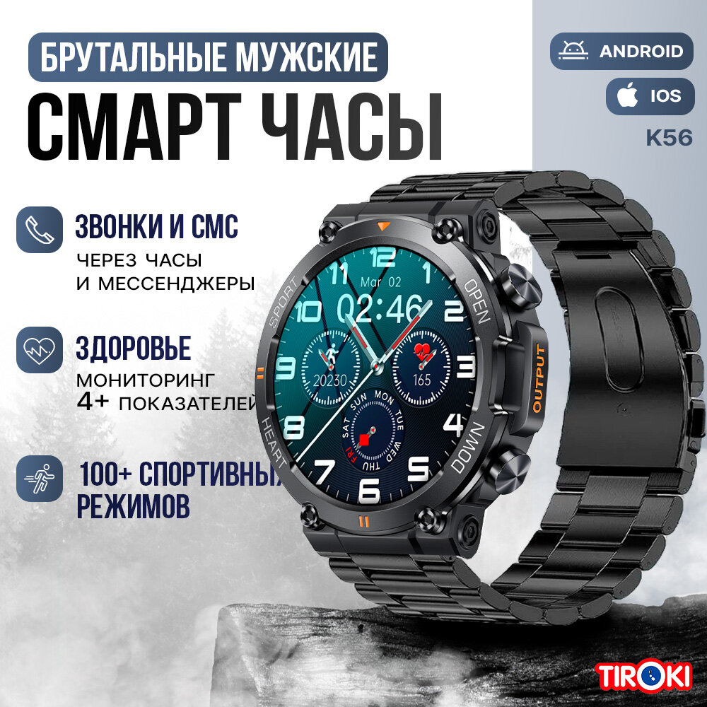 Смарт часы мужские спортивные Tiroki K56 черный милан металл / Умные часы наручные / Bluetooth Smart Watch / Мужские часы наручные / Смарт вотч с пульсометром, шагомером, счетчиком калорий
