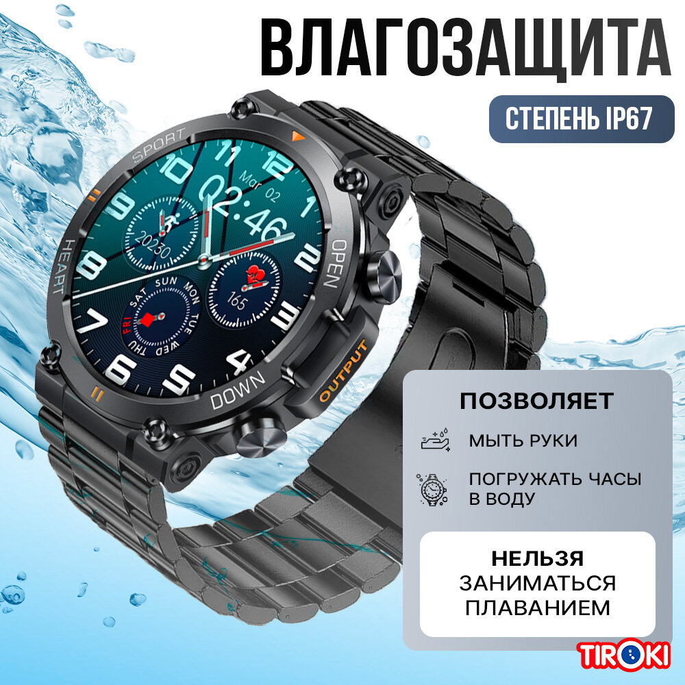Смарт часы мужские спортивные Tiroki K56 черный металл / Умные часы наручные / Bluetooth Smart Watch с пульсометром, шагомером, счетчиком калорий
