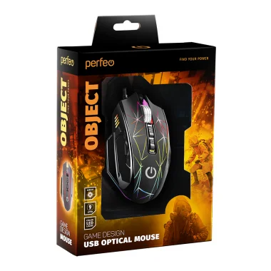 Мышь оптическая Perfeo "OBJECT", 9 кн, USB, чёрн.