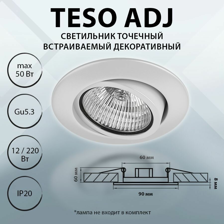 Светильник LIGHTSTAR Teso Adj 11080, 50Вт, патрон GU5.3 х 1шт, встраиваемый, на потолок, белый