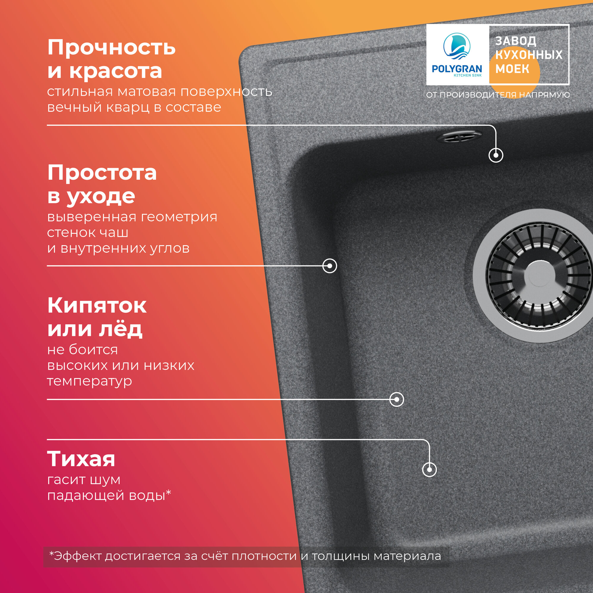 Кухонная мойка Polygran Quartz Bond 610 уголь