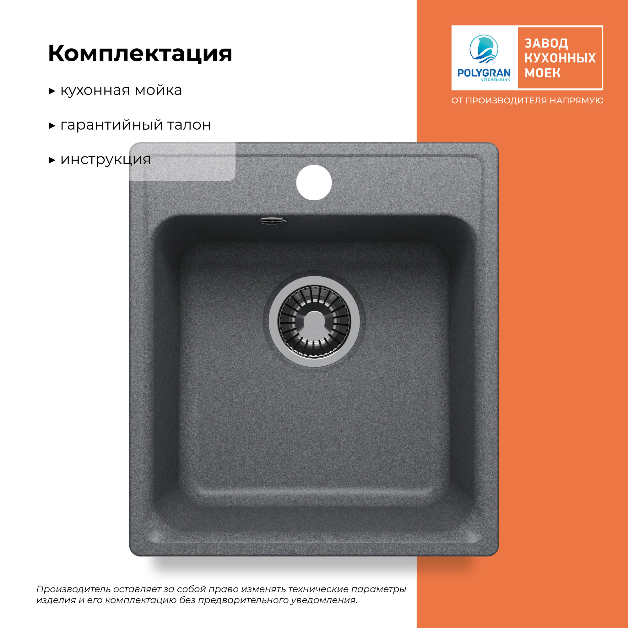Polygran Мойка кухонная Polygran Quartz Bond 480, уголь, арт,688193