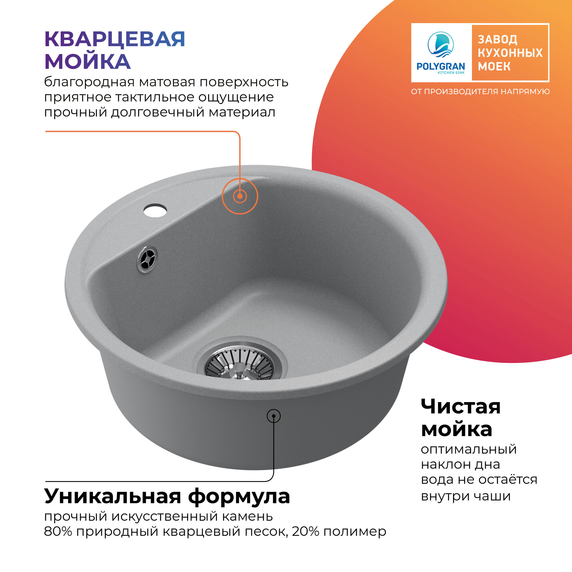 Мойка кухонная округлая Polygran Quartz Bond уголь (688193)
