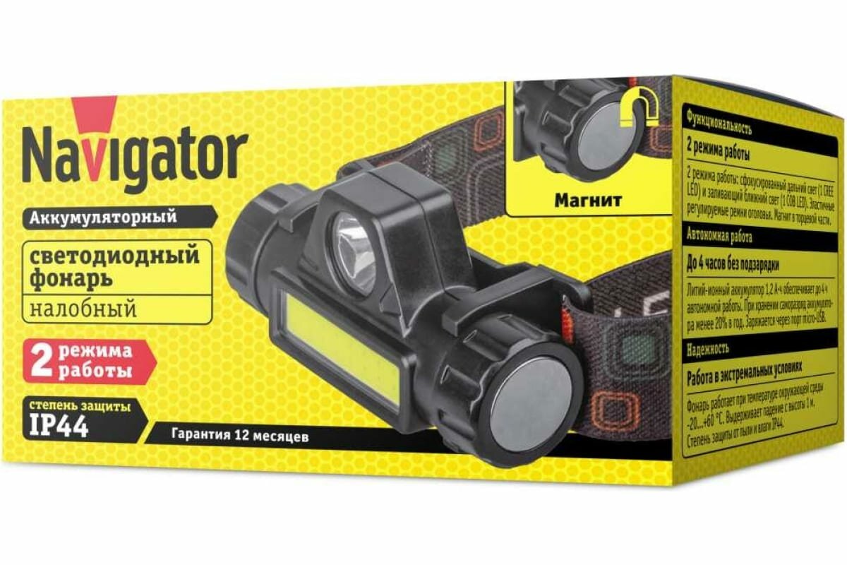 Фонарь налобный Navigator 14 661 NPT-H25, 2 режима работы, аккум. Li-ion 1200 мА/ч