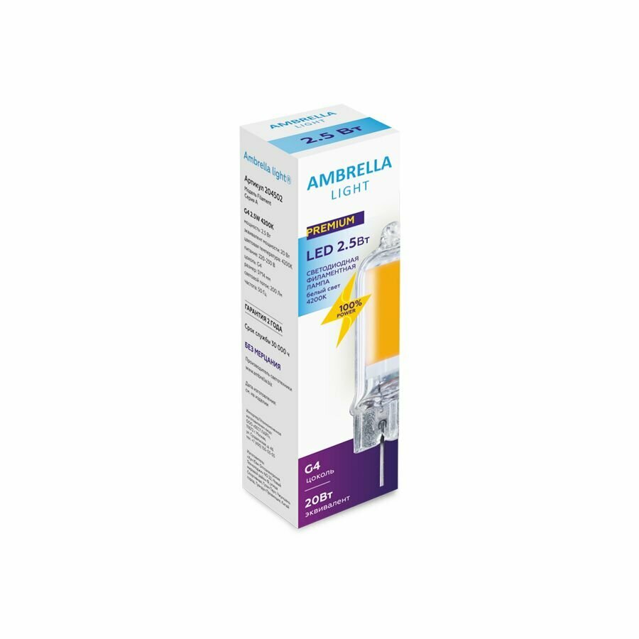 Купить Светодиодная лампа Ambrella Light Filament G4 G4 2,5W 4200K 204502